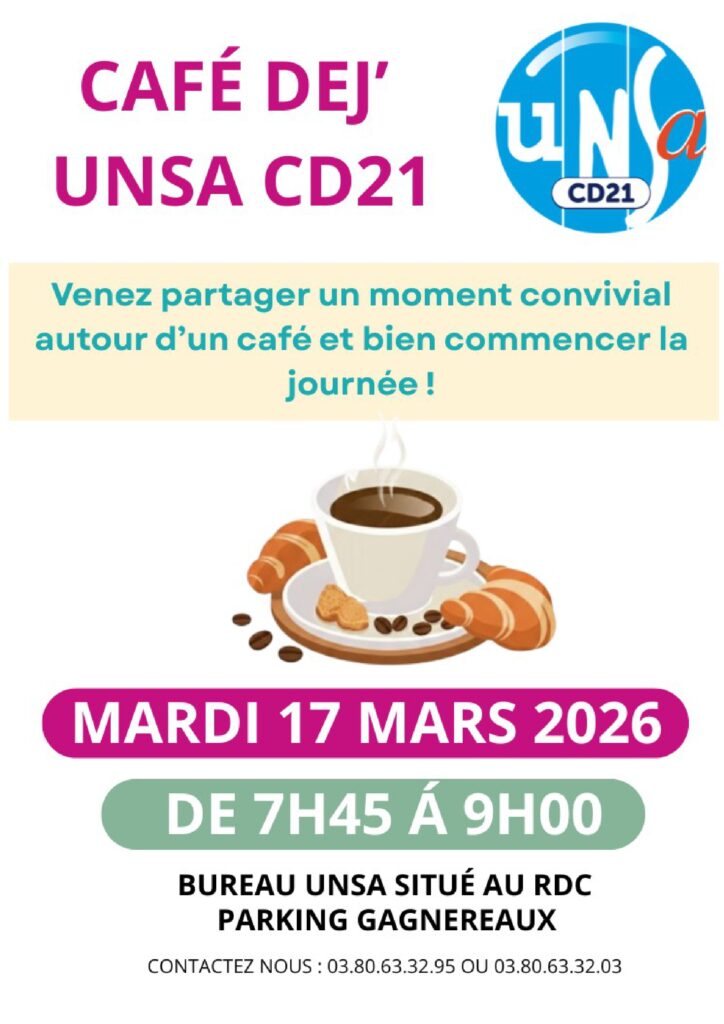 L’UNSA CD21 a le plaisir de vous inviter à son traditionnel Café Dèj’.
